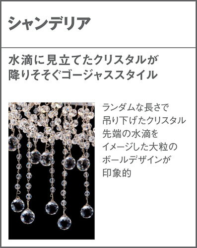 カテゴリシャンデリア ◆メーカー希望小売価格はメーカーカタログに基づいて掲載しています◆←画像クリックでPCページへ移動します↑モバイルでご使用のお客様へご購入前に必ずPC用ページに切り替えてご確認下さい●スマートフォン用の商品ページは、商品を快適にご覧いただくために最低限の情報のみの掲載となっております。