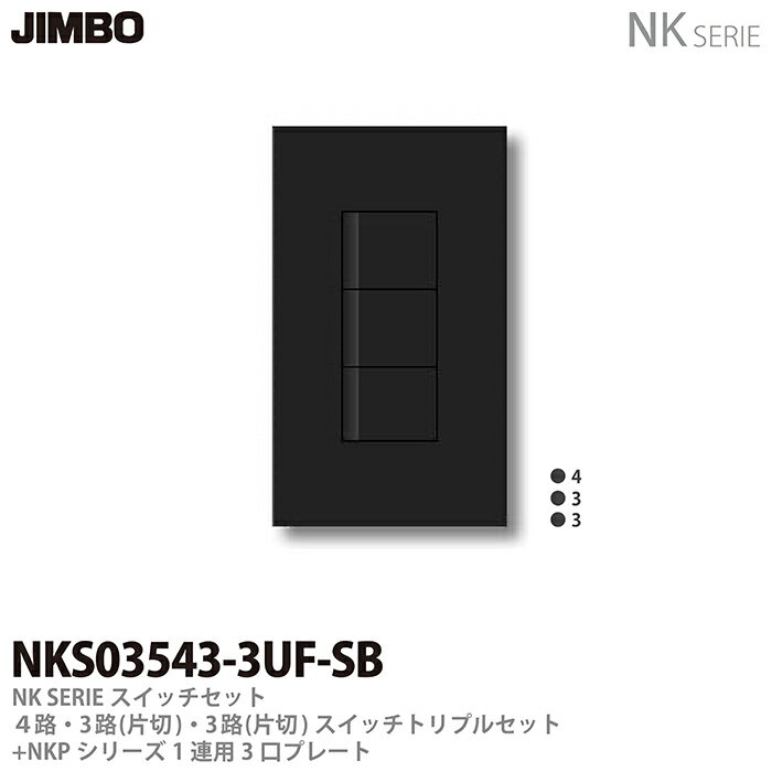 【JIMBO】NKシリーズスイッチ・プレート組合わせセット4路・3路(片切)・3路(片切)スイッチトリプルセット+1連用3口プレート色:ソフトブラックNKS03543-3UF-SB