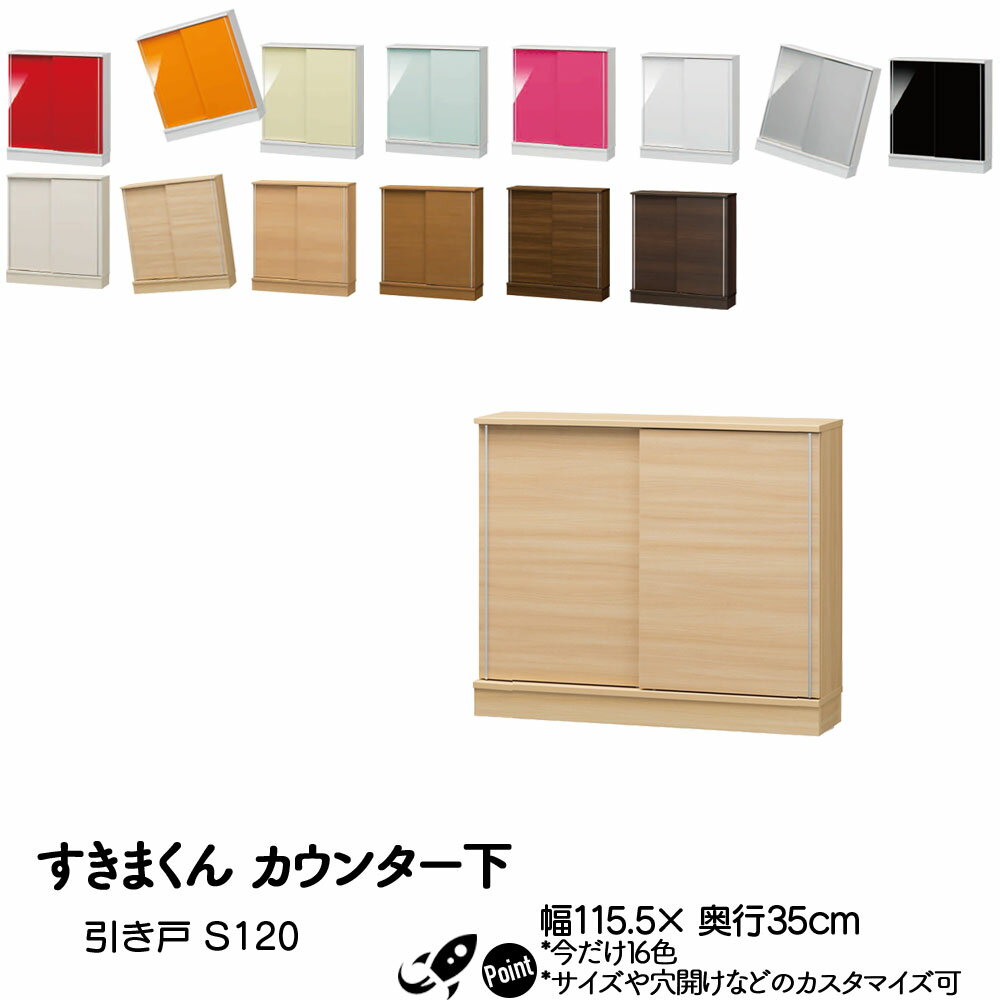 すきまくん カウンター下 引戸 CSP-S120-35 幅115.5×奥行35×高さ77-103cm カウンター下収納 セミオーダー